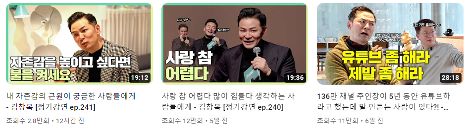 130만 구독자를 가진 김창옥 강사의 유튜브 정말 추천합니다.